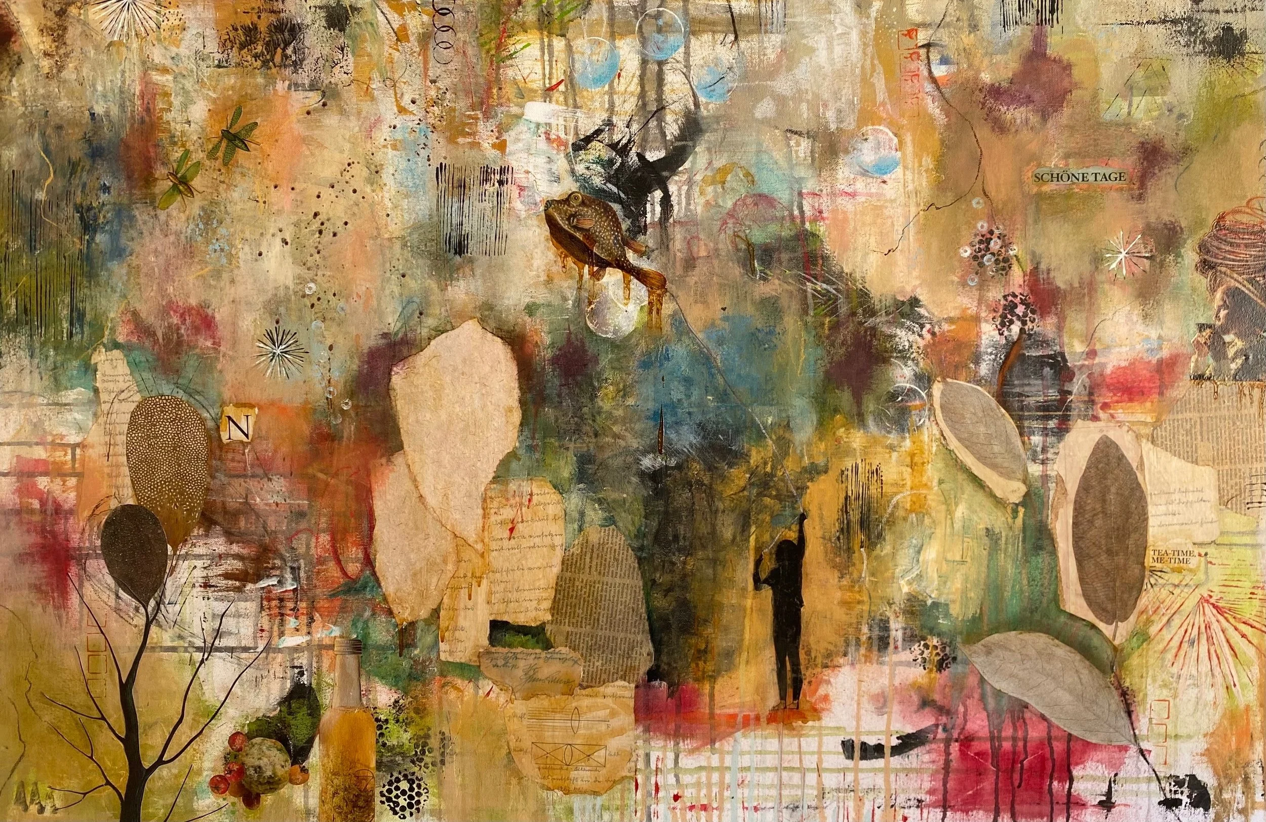 Nach meinem Studium der Bildhauerei musste ich mich zunächst von den erlernten Konventionen lösen, um meinen künstlerischen Ausdruck neu zu definieren. Die Bildhauerei prägt mich dennoch nachhaltig - das Dreidimensionale, das bewusste Betrachten und Wirkenlassen, sowie das Haptische, blieben essentiell für meine Kunst. Dieses Loslassen war ein Akt der Befreiung, der es mir erlaubte, neue Pfade zu erkunden. In meine Werke flossen fortan unterschiedlichste Materialien ein, die Technik des Kollagierens eröffnete mir neue Welten. Schließlich fand ich meinen Weg zur Leinwand und zur Malerei.